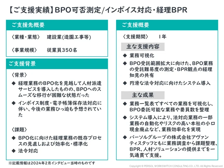 ご支援内容の詳細 ― 建設業界における経理業務のBPO化支援実績