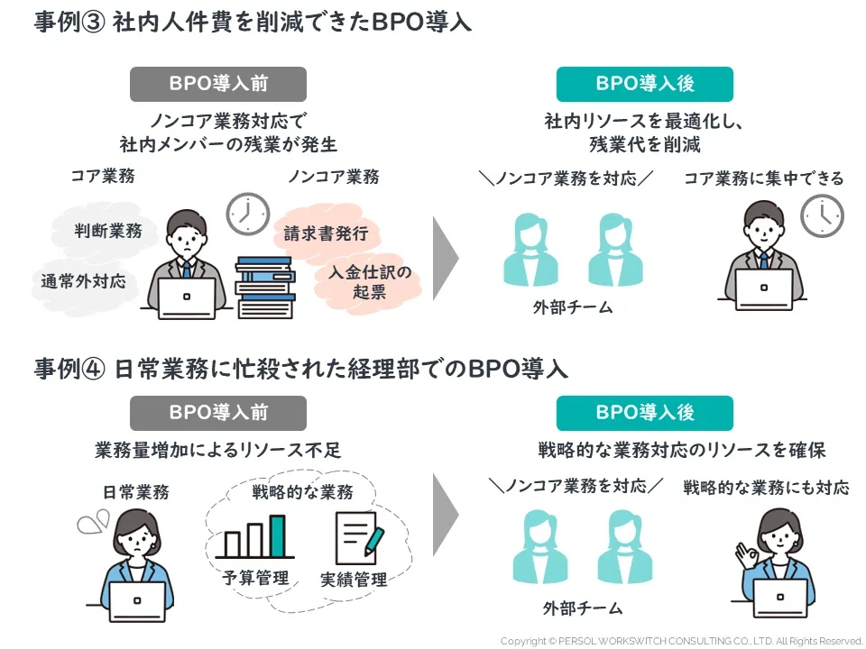 そこでBPOを導入し、委託先企業のメンバーによりノンコア業務を実施。
