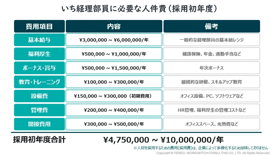 正社員(1人あたり)にかかる費用は、年間でおよそ¥4,750,000 ~ ¥10,000,000※