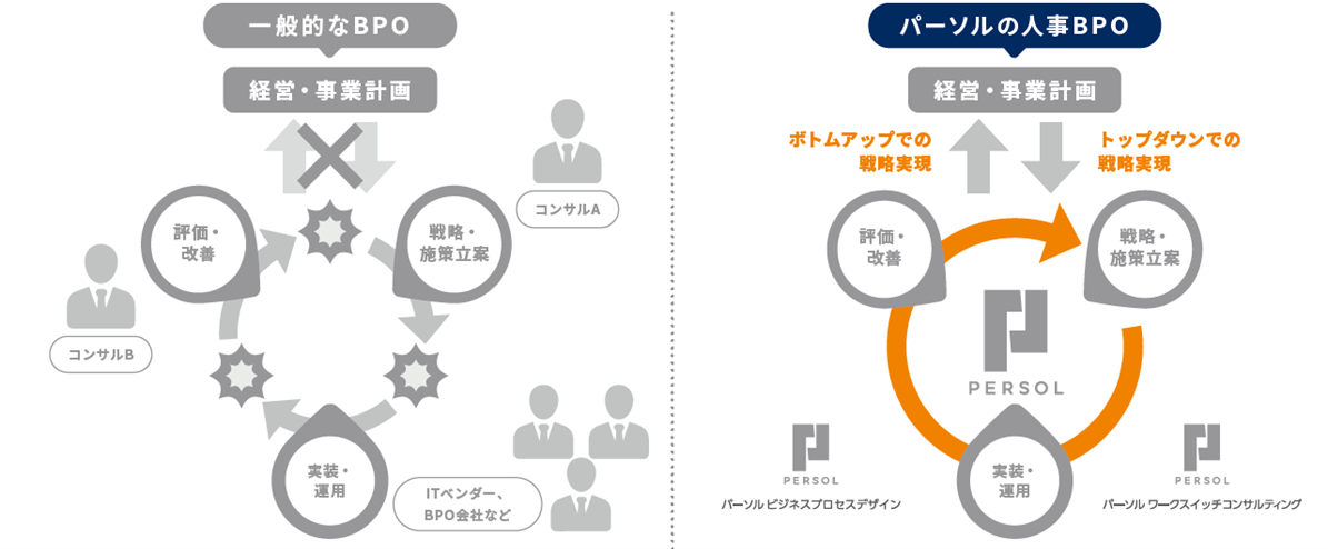 一般的な人事BPOとパーソルの人事BPOの比較