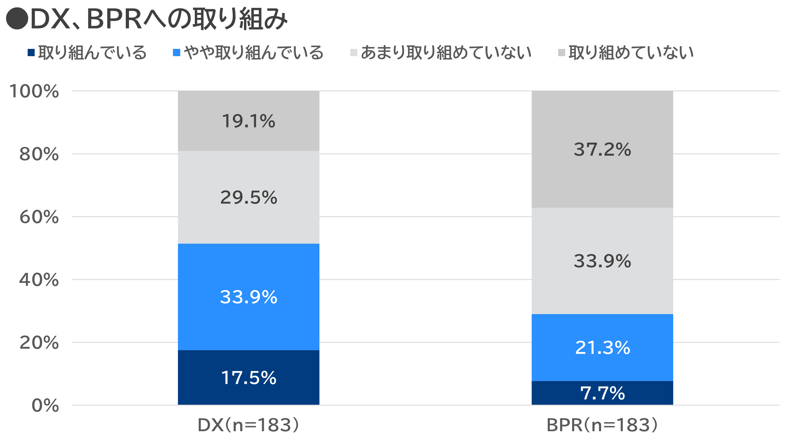 設問:人事部門において、組織や業務の変更、システム導入、アウトソーシングなどを進める際、BPR(ビジネスプロセス・リエンジニアリング)を積極的に進めていますか。