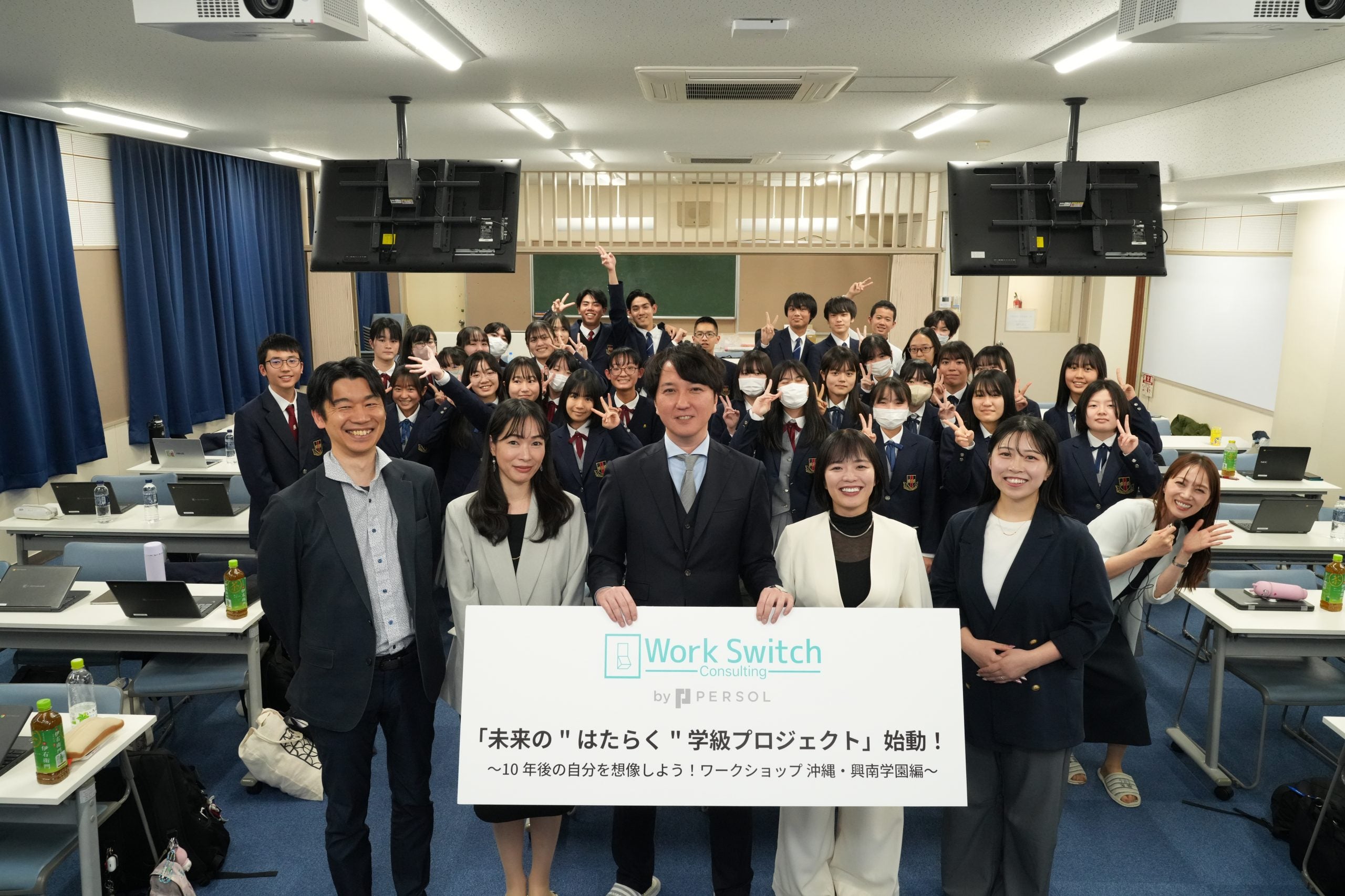 「はたらいて、笑おう。」をビジョンに掲げるパーソルグループのパーソルワークスイッチコンサルティング株式会社(本社:東京都千代田区、代表取締役社長:小野 隆正、以下「パーソルWSC」)は、この度、未来の「はたらく」を共に考え、ビジョン創生を応援する、日本全国の中高生向け新プロジェクト「未来の“はたらく”学級プロジェクト」を始動しました。その第一弾として、2025年2月25日(火)に、沖縄県の学校法人 興南学園にて、「10年後の自分を想像しよう!ワークショップ 沖縄・興南学園編」を開催しました。