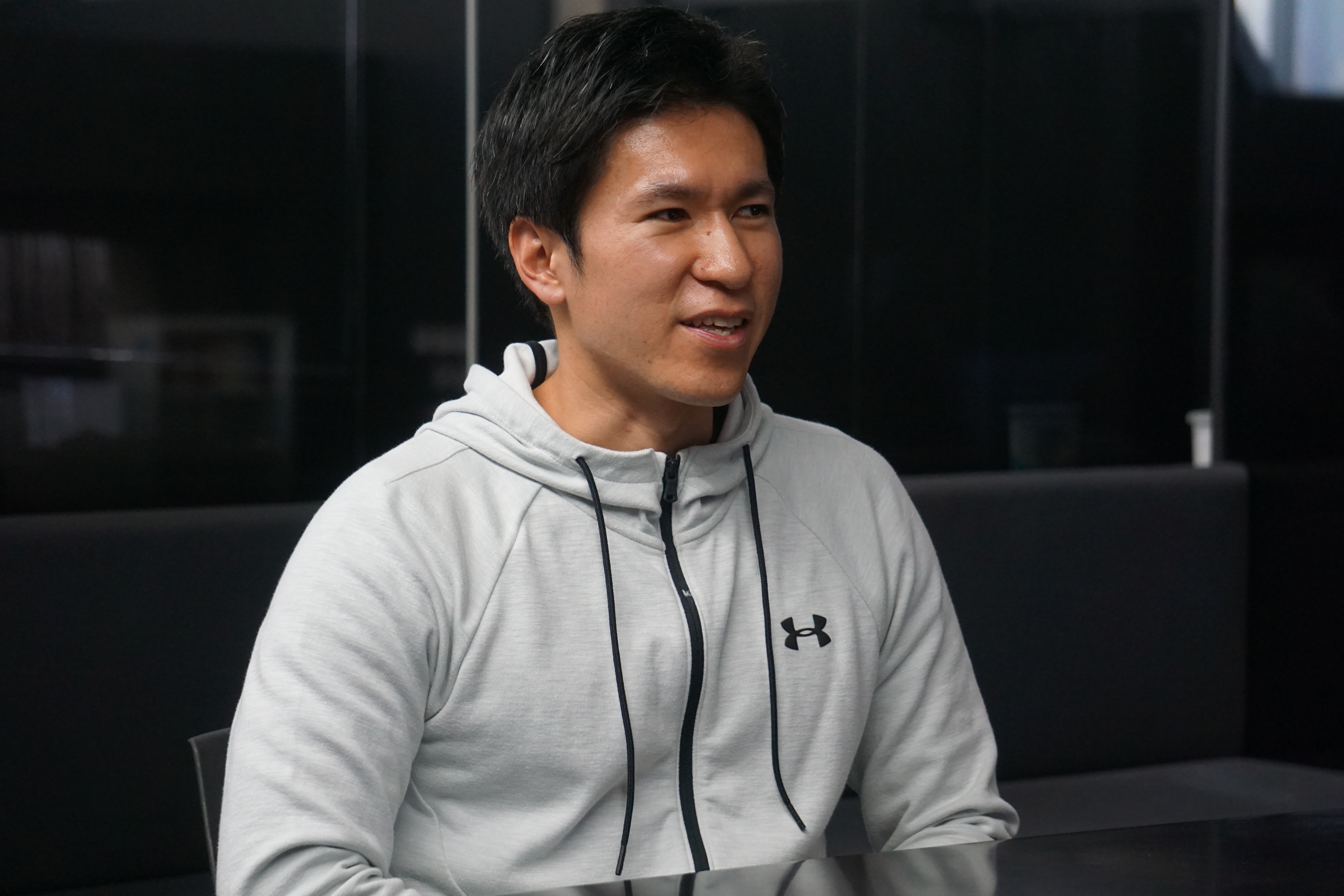 若林氏:1996年設立の比較的新しい会社で、社員数は2020年1月6日現在で372名です。アンダーアーマーの日本の総代理店として、スポーツアパレル・スポーツサプリメント・テーピングの開発と販売を行っています。プロのアスリートへのパフォーマンスディレクションも事業のうちの1つです。実際会社の1階がトレーニングジムとなっているので、そこでアスリートのサポートを行っています。