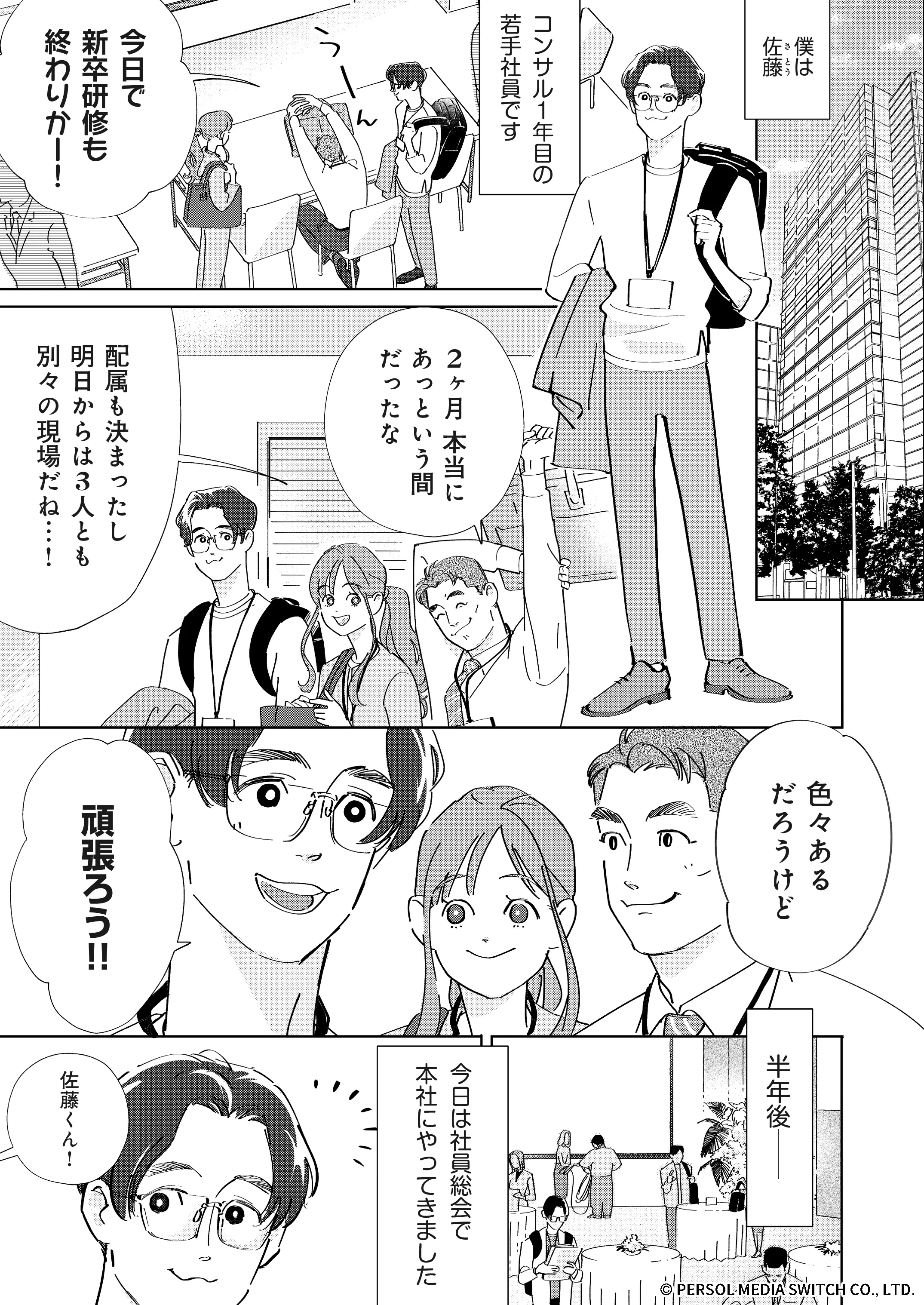 パーソルワークスイッチコンサルティングに新卒で入社した社員がコンサルタントとしてどのようにはたらくのか、実際の事例をもとにコミカライズしたコンテンツです。