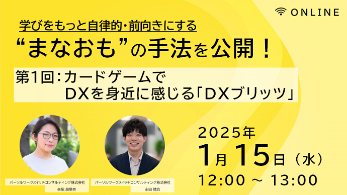本ウェビナーでは、その意義や手法について事例をまじえながらご紹介します。第1回でご案内するコンテンツは、カードゲームで遊びながらDXを身近に感じる「DXブリッツ」です。社員にもっとDXについて考えてほしい、新入社員向けのDX入門コンテンツを探している。そんな方はぜひご参加ください。