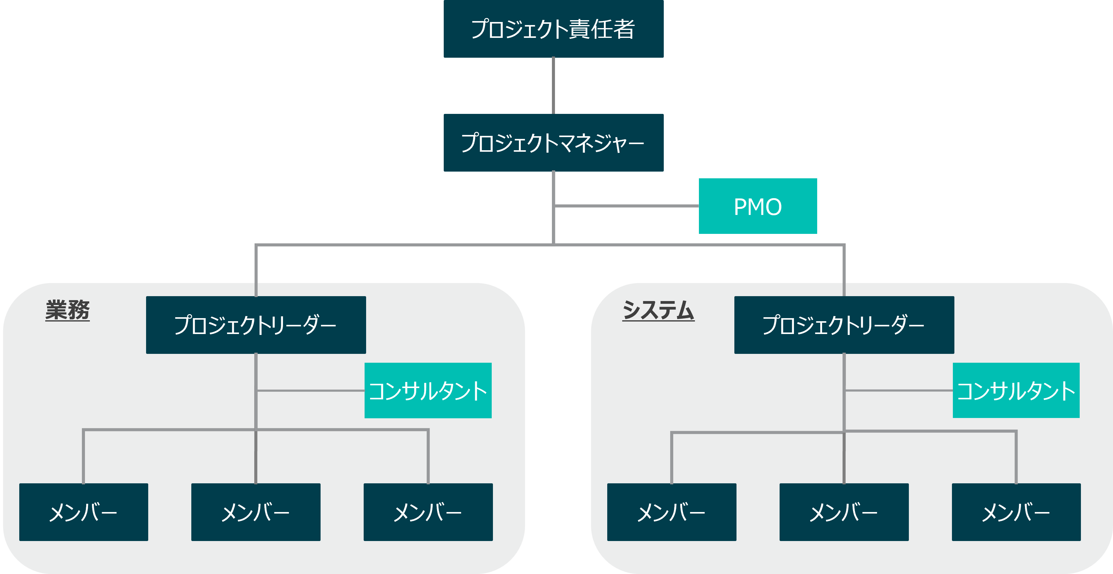 プロジェクト全体を管理するPMOに加え、業務やシステムなど各領域にコンサルタントをアサインすることで包括的にご支援します。