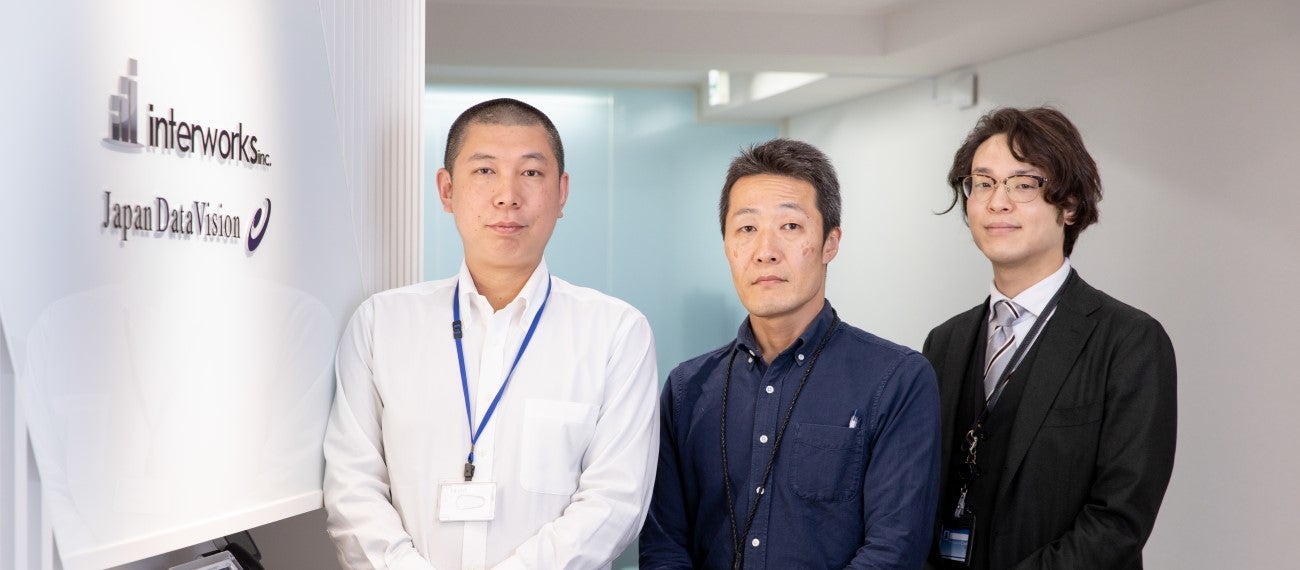 お話は、日本データビジョンのグループ会社である株式会社インターワークス IT戦略本部 本部長の小笠原泰樹氏と技術部 部長の野口剛氏、日本データビジョン株式会社 経営管理部 管理グループの永井研祥氏に伺いました。